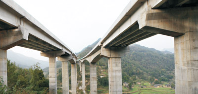 广南高速苍溪嘉陵江特大桥 全桥长1339米,主跨200米,墩高105米,预应力砼连续刚构桥,2012年4月建成通车。