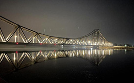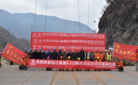 2月28日,在约乌拉达特大桥金阳岸的试吊平台上,110t的配重在缆索系统的牵引下,缓缓的提升到预定高度,并按既定方向移动