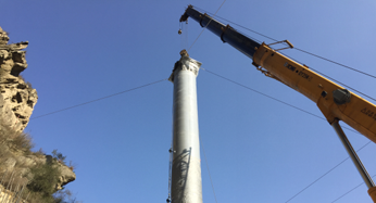 汶马高速C4合同段钢桁梁桥第一根墩柱钢管安装顺利完成