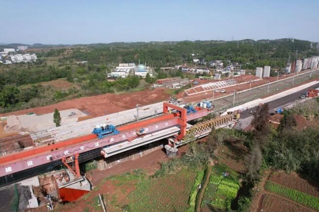 11月16日中午12:08分,随着架梁机将最后一榀重约370吨、长32米的单线预制箱梁、稳稳落在下行联络线