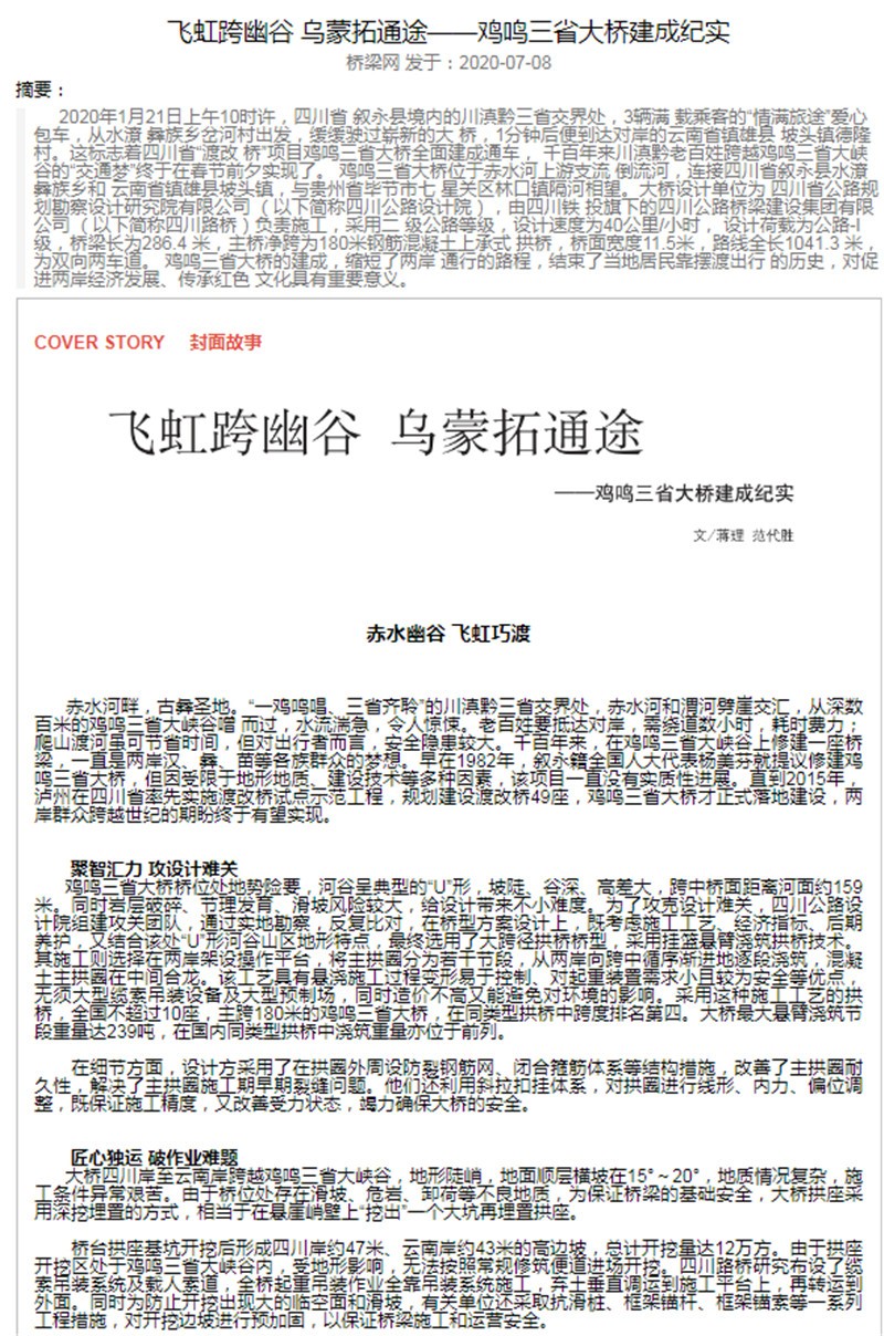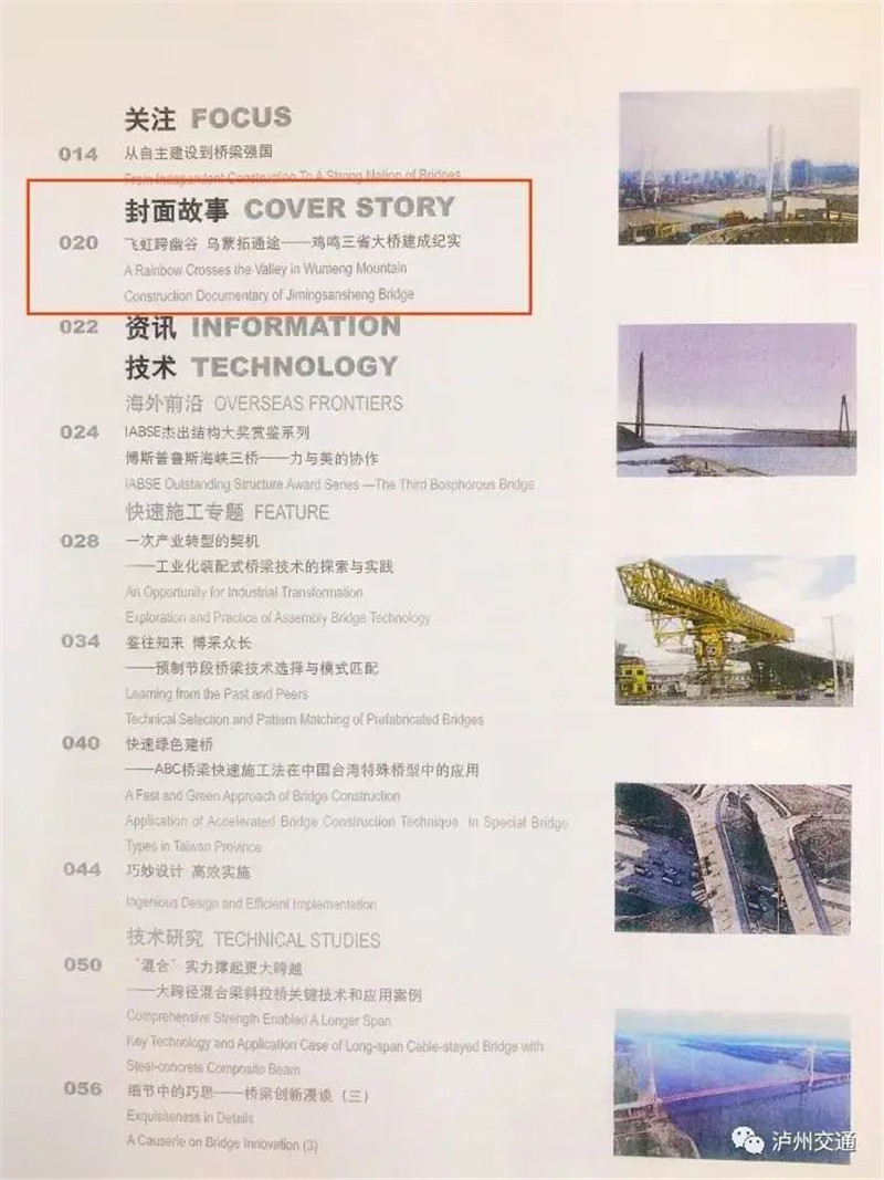又喜提业内权威刊物—《桥梁》杂志封面。2020年第3期《桥梁》杂志封面和封面故事,以图文结合的形式报道了。