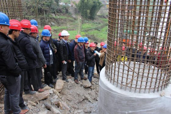 12月10日下午,在JL2总监办的组织下,业主副总工程师兼工程处处长张晓波、JL2总监办总监黄远东及江习古高速公路TJ1-TJ13分部的人员,观摩我分部正在施工的新龙台大桥墩柱钢筋保护层厚度控制措施。