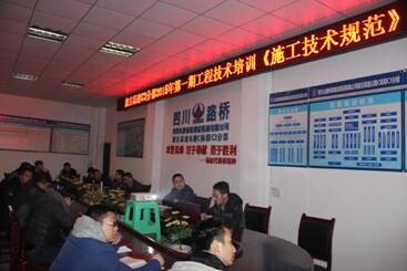 2015年1月18日19点,叙古C3分部2015年第一期工程技术人员培训---《公路桥涵施工技术规范》,项目部经理余伟主持会议,工程系列人员参加集中学习和培训,培训讲师由分部副总工谢鑫担任,第一期培训时间为一个月,主要内容是桥梁施工技术管理。开课前,余经理提出本次培训的口号“质量意识是魂,技术力量是本”,应结合现场管理认真学习领悟,增强自身内功,提高工作质量和效率,争取快速地成长,在各自岗位上做一名优秀的员工;本批培训的主要内容包括现行施工技术规范、质量检验评定标准、常规施工方案以及质量事故案例分析;并明确整个培训结束时,将对大家学习的成效进行考核。同时为了调动大家的积极性,设立奖惩机制,对成绩优秀的员工给予奖励,对成绩不合格的员工进行追加集中学习。本期培训结束之后还将进行第二期路基施工技术管理、第三期隧道施工技术管理的培训。