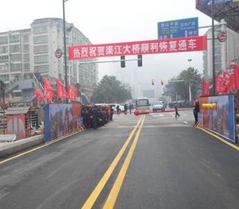 2014年12月29日上午10时30分,举行了G318线渠县渠江大桥恢复通车的仪式。渠县县委书记王善平、县长苟小莉、 桥梁公司董事长蔡乐军出席。县委、县政府相关单位负责人,特种工程分公司总经理吴春其、党支部书记魏文生陪同参加。