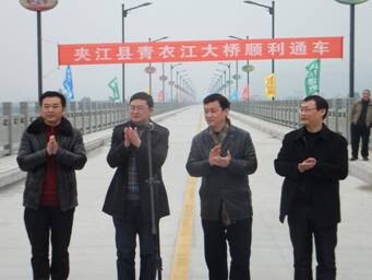 2014年12月22日,通过四川路桥桥梁公司特种工程分公司的建设者们艰苦卓绝的努力,胜利完成了夹江县青衣江大桥加固改造工程。上午11时,青衣江大桥加固改造工程项目部在现场举行了通车仪式。夹江县县委副书记卢洪,副县长罗国雄,副局长杨华,特种工程分公司党支部书记魏文生出席了庆祝仪式并致辞。