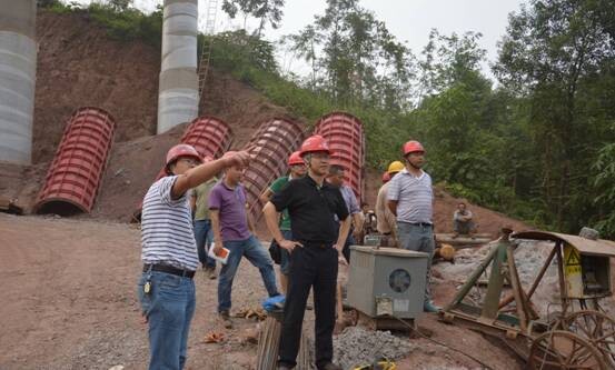 蔡总首先深入到施工第一线,对控制性工程永宁河大桥、重点工程罗家湾大桥、烧龟田大桥、双桂园大桥及路基、预制场及钢筋加工厂等进行细致察看,对工程质量、安全、进度进行现场指导。蔡总指出:1.桥梁施工受天气影响较大,施工方案若不够细致,对问题预估不足,必将影响工程进度及成本;2.预制场是项目部出产值树形象的关键点,要求统筹协调,加强管理,加快生产;3.运梁通道的畅通,是确保预制场正常生产的关键,必须合理安排桥梁下部结构及路基施工;4.跨铁路、跨省道施工作业区,要制定专项施工方案,尽早与相关单位协调,完善相关手续。