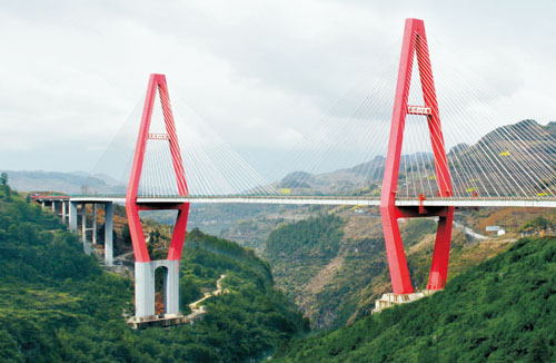 全长840米,主跨360米,主塔高188.01双塔双索面PC砼斜拉桥,2009年12月建成通车。