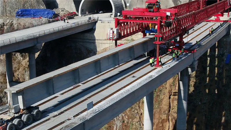 3月23日,在沿江高速雷波段吾多拉达大桥施工现场,随着一片长40米、重117吨的预制混凝土T梁精准平稳落梁就位,宣告本项目全线首个主线桥梁提前全部架设完毕,这是项目部以“开工就是决战,起步即是冲刺”的昂扬斗志拼搏出的“加速度”,更新了项目桥梁建设“进度条”,为全线顺利通车奠定了坚实基础。