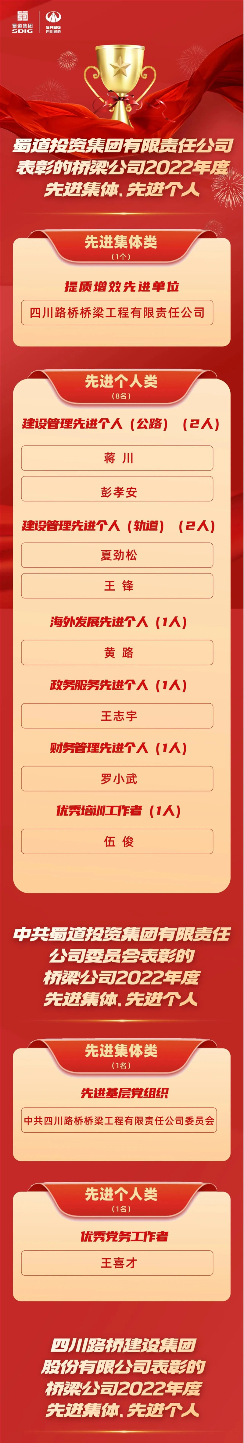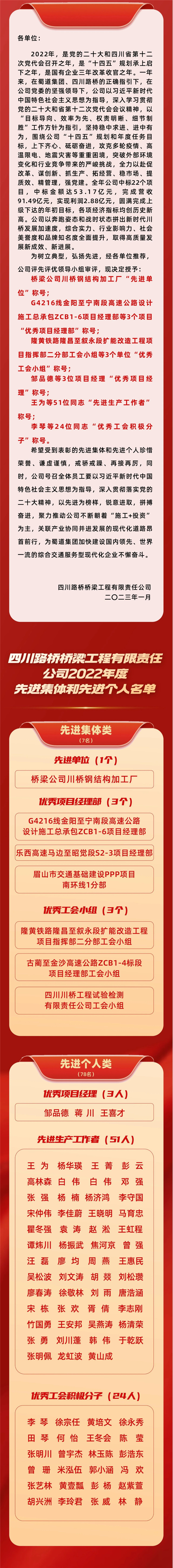 桥梁公司2022年度先进集体和先进个人光荣榜